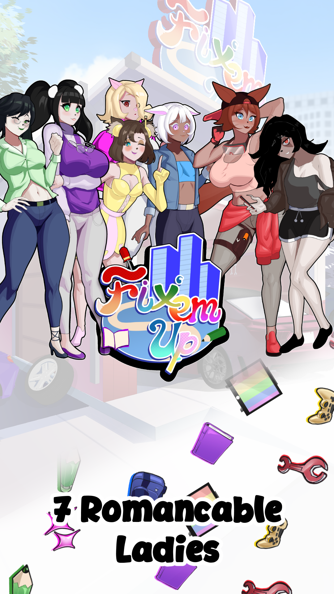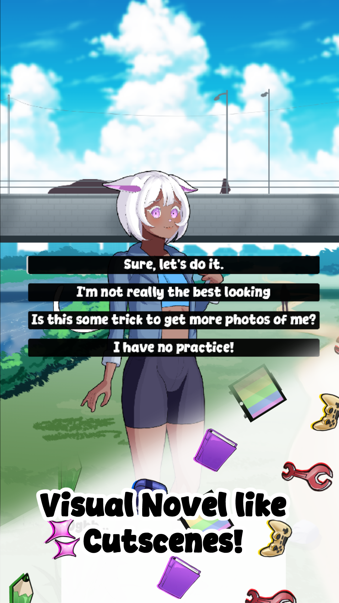 I am a indie developer! Proud to share my first work! The game art, music, and writing is done all by myself! I hope to have the game be 40 level plus with custom arts for affection, more costumes, more music, and etc. If you'd like to support consider supporting my Ko-fi.